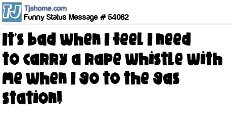 X It's bad when I feel I need to carry a rape whistle with me when I go to the gas station!