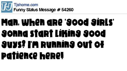 X says man, when are 'good girls' gonna start liking good guys? I'm running out of patience here!