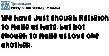 X is We have just enough Religion to make us hate, but not enough to make us love one another.