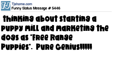 X is thinking about starting a puppy mill and marketing the dogs as "Free Range Puppies". Pure Genius!!!!!
