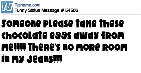 X is Someone please take these chocolate eggs away from me!!!! There's no more room in my jeans!!!