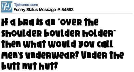 - # 64913 wondering if a bra is called an over the sholder bolder holder then what is mens underwear under the but nut hut?