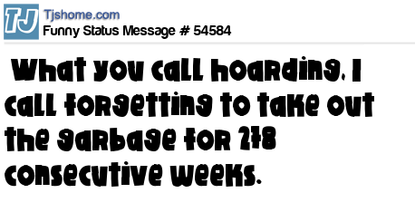 X is  What you call hoarding, I call forgetting to take out the garbage for 278 consecutive weeks.