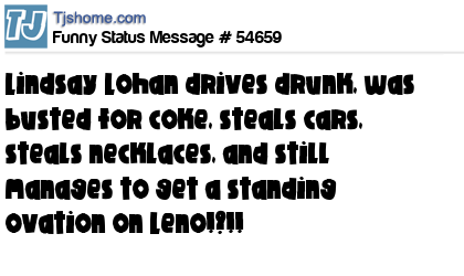 X Lindsay Lohan drives drunk, was busted for coke, steals cars, steals necklaces, and still manages to get a standing ovation on Leno!?!!