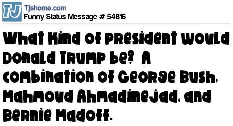 X is What kind of president would Donald Trump be? A combination of George Bush, Mahmoud Ahmadinejad, and Bernie Madoff.