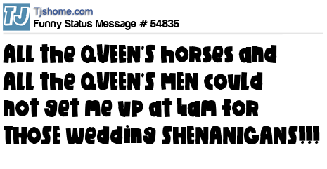X all the QUEEN'S horses and ALL the QUEEN'S MEN could not get me up at 4am for THOSE wedding SHENANIGANS!!!