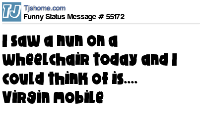 - # 84311 saw a nun in a wheelchair and all I could think.. Virgin Mobile.