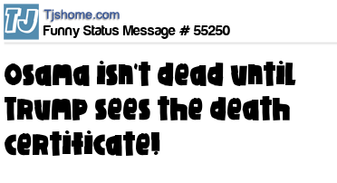 - # 55462 So word is Osama is on his way to Hawaii to get a death certificate made, since that state is now known for making the best authentic looking fictitious certificates.