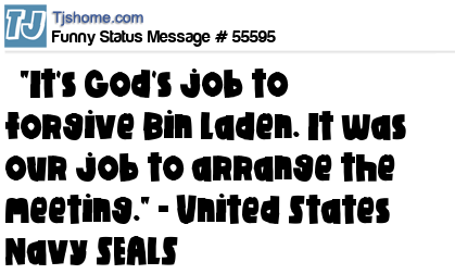X "It's God's job to forgive Bin Laden. It was our job to arrange the meeting." - United States Navy SEALS