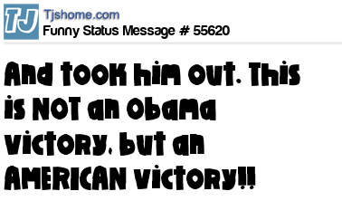 X and took him out. This is NOT an Obama victory, but an AMERICAN victory!!
