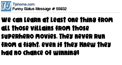 X says We can learn at least one thing from all those villains from those superhero movies. They never run from a fight, even if they knew they had no chance of winning!