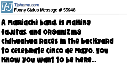X has a mariachi band, is making fajitas, and organizing chihuahua races in the backyard to celebrate Cinco de Mayo. You know you want to be here...