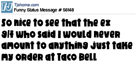 X is so nice to see that the ex g/f who said I would never amount to anything just take my order at Taco Bell