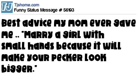 X is Best advice my mom ever gave me .. "Marry a girl with small hands because it will make your pecker look bigger."