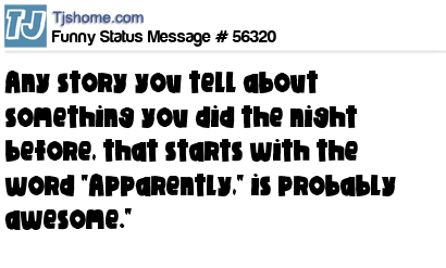 X is Any story you tell about something you did the night before, that starts with the word "Apparently," is probably awesome."