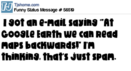- # 56486 I got an e-mail saying 'At Google Earth we can read maps backwards!' I thought "That's just spam."