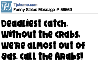 X says Deadliest catch, without the crabs, we're almost out of gas, call the Arabs!