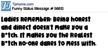 X is Ladies remember: Being honest and direct doesn't make you a B*tch. It makes you the Realest B*tch no-one dares to mess with.