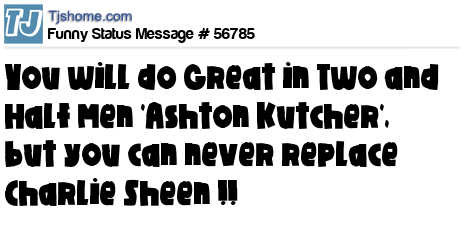 - # 56784 Ashton Kutcher replaces Charlie Sheen on Two and a Half Men.......Sheen's no longer winning is he?