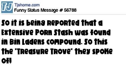 X So it is being reported that a Extensive Porn Stash was found in Bin Ladens compound. So this the "Treasure Trove" they spoke of!