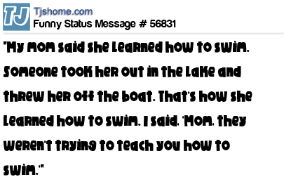 X "My mom said she learned how to swim. Someone took her out in the lake and threw her off the boat. That's how she learned how to swim. I said, 'Mom, they weren't trying to teach you how to swim.'"