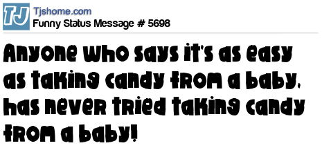 - # 43367 Anyone who uses the phrase "easy as taking candy from a baby" has never tried taking candy from a baby.