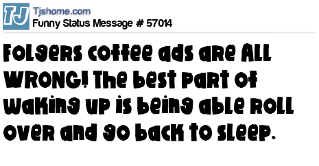 X Folgers coffee ads are ALL WRONG! The best part of waking up is being able roll over and go back to sleep.