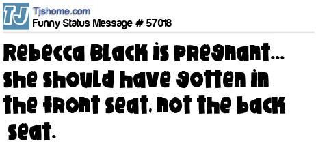 - # 79614 I just saw a headline saying, "Is Rebecca Black pregnant?" & all I could think of was that I guess she chose the back seat.