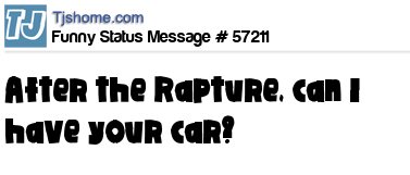 - # 58022 was really hoping the rapture was coming to take away all the people that believed this rapture was real.