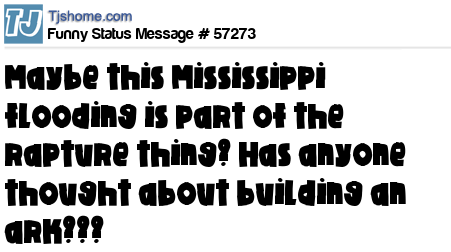 X Maybe this Mississippi flooding is part of the rapture thing? Has anyone thought about building an ark???