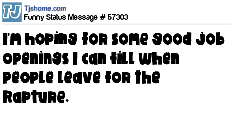 X says I'm hoping for some good job openings I can fill when people leave for the Rapture.