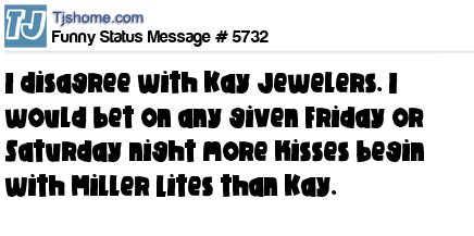 X says I disagree with Kay Jewelers. I would bet on any given Friday or Saturday night more kisses begin with Miller Lites than Kay.
