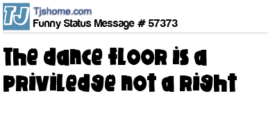 - # 169353 So drunk last night. When I walked across the dance floor to get another drink I won the dance competition.