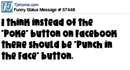 - # 80681 Maybe, even just for a day, we could change the 'poke' button on Facebook to 'punch in the face'.