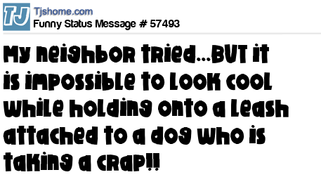 X is My neighbor tried...BUT it is impossible to look cool while holding onto a leash attached to a dog who is taking a crap!!