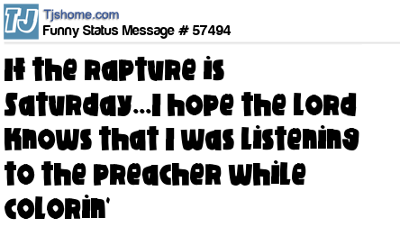 X is If the rapture is Saturday...I hope the Lord knows that I was listening to the preacher while colorin'