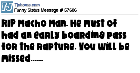 X says RIP Macho Man. He must of had an early boarding pass for the rapture. You will be missed......
