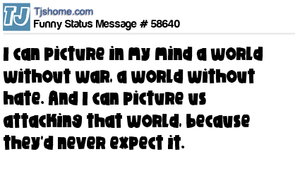 - # 8068 ...can picture in my mind a world without war, a world without hate. And I can picture us attacking that world, because they'd never expect it.