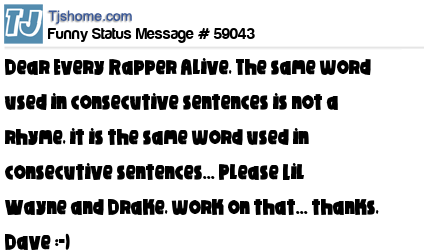 X is Dear Every Rapper Alive, The same word used in consecutive sentences is not a rhyme, it is the same word used in consecutive sentences... Please Lil Wayne and Drake, work on that... thanks, Dave :-)