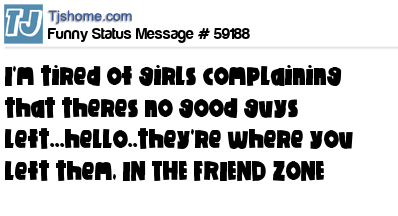 - # 79235 There are girls complaining that there's no good guys left...Hello.....they are where you left them, IN THE FRIEND ZONE
