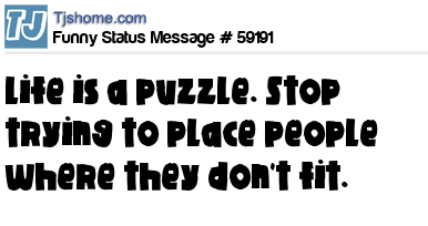 - # 167934 You are part of a puzzle in someones life. You may never know where you fit. But, someones life may never be complete without you in it.