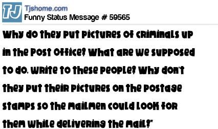 X is Why do they put pictures of criminals up in the Post Office? What are we supposed to do, write to these people? Why don't they put their pictures on the postage stamps so the mailmen could look for them while delivering the mail?"