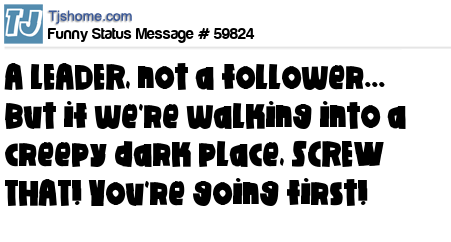 - # 80496 I'm a leader, not a follower.. Unless it's a dark place, then screw it, you're going first!