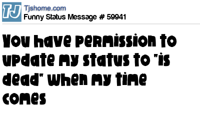- # 33112 When I die, I give you permission to change my status to, "is dead."