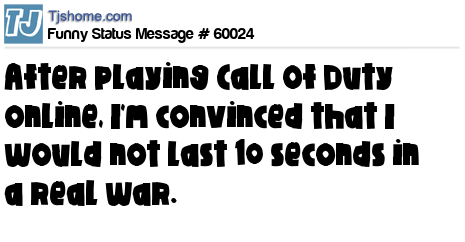 X After playing Call Of Duty online, I'm convinced that I would not last 10 seconds in a real war.