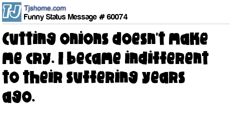 X Cutting onions doesn't make me cry. I became indifferent to their suffering years ago.