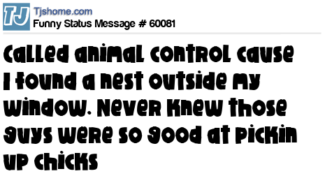 X is Called animal control cause I found a nest outside my window. Never knew those guys were so good at pickin up chicks