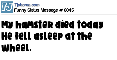 - # 22372 My hamster died today. He fell asleep at the wheel...