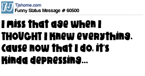 X I miss that age when I THOUGHT I knew everything. Cause now that I do, it's kinda depressing...