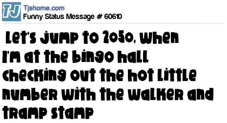 X says let's jump to 2050, when I'm at the bingo hall checking out the hot little number with the walker and tramp stamp